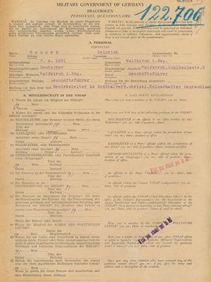 Meldebogen zur Entnazifizierung