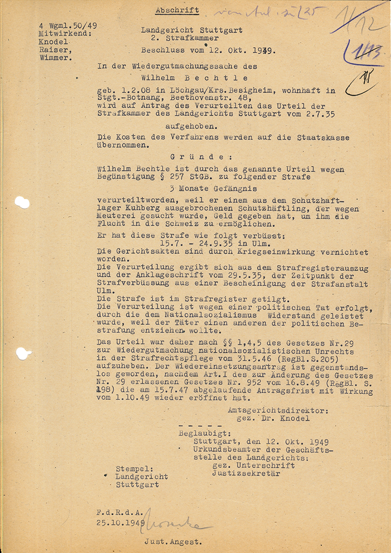 Madleine Grünwald,Reinhold Bechtle: Familie Bechtle aus Löchgau. Widerstand und Verfolgung einer württembergischen Familie, in: Mitteilungen. Dokumentationszentrum Oberer Kuhberg Ulm e. V. KZ-Gedenkstätte, 42, November 2004, S. 7-9.