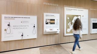 Ein Kurzfilm stellt das Bürger- und Medienzentrum des Landtag vor: In gut zwei Minuten gibt er Einblicke in diesen architektonisch spannenden Bau, der sich um eine stufenförmige Agora drapiert. Gestaltet wurde das Video von den Machern der Dauerausstellung, "Echo und Flut".
