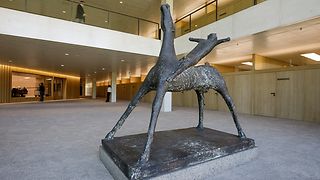Die Wandelhalle erfüllt an Plenartagen von morgens bis abends den Zweck einer klassischen Lobby. Imposant: das 1953/54 in Bronze gegossene Reiterbild "Il Miracolo" (Bild 6) des Mailänder Bildhauers Marino Marini (1901-1980).