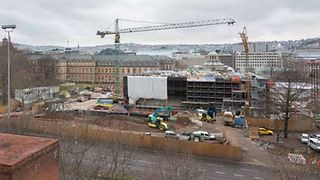 Blick vom Haus der Abgeordneten auf die Baustelle Landtagsgebäude.