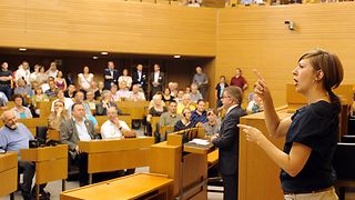 <span style="font-family: Arial, Helvetica, sans-serif; line-height: 18.171875px;">Frauen mischen mit: Über die Bürgerbeteiligung aus Frauensicht wird im Plenarsaal intensiv diskutiert.</span>