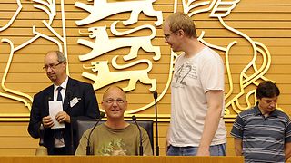 <span style="font-family: Arial, Helvetica, sans-serif; line-height: 18.171875px;">Einmal auf dem Sessel des Landtagspräsidenten Platz nehmen und die Sitzungsglocke läuten: Beim Bürgerfest war fast alles erlaubt und viele Besucherinnen und Besucher machten hiervon gerne Gebrauch.</span>