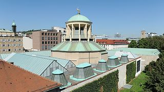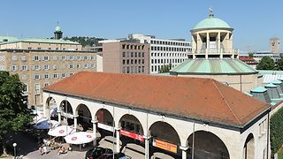 Blick auf das Stuttgarter Kunstgebäude, in dessen Kuppelsaal zwei Jahre lang die Plenarsitzungen des Landtags stattfinden.