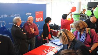 Die vier Landtagsfraktionen präsentieren sich im Landtagszelt: Hier der Stand der SPD