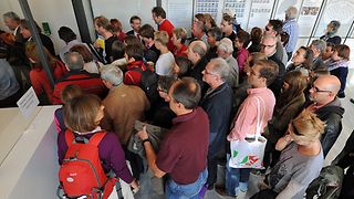 <font face="Arial, Helvetica, sans-serif"><span style="line-height: 18.171875px;">Anstehen im Kunstgebäude: Viele Festbesucher nutzen die Möglichkeit, einen Blick in den Interimsplenarsaal zu werfen</span></font>