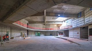 Der Plenarsaal im Rohbau mit Dachöffnung.<br />