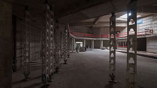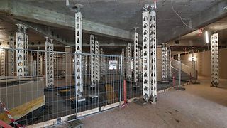 Temporäre Abstützungsmaßnahmen im Foyer.<br />