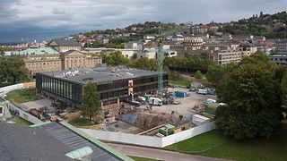 Blick auf das Haus des Landtags, das derzeit generalsaniert wird.<br />
