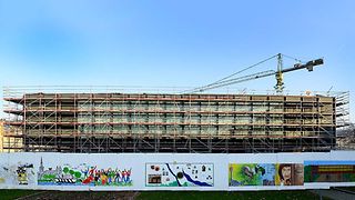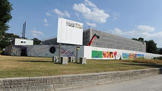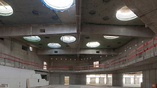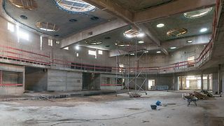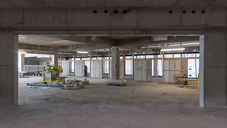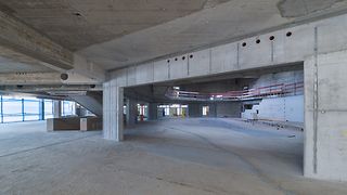 Große Öffnungen wurden in den Wänden des Plenarsaals geschaffen, der sich noch im Rohbau befindet.<br />