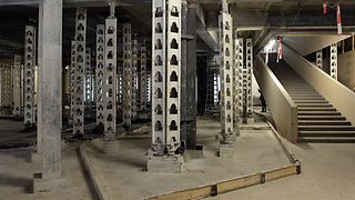Noch tragen Hilfsabstützungen das Gebäude. Nach Aushärtung der neuen Stahlbetonbauteile können diese in absehbarer Zeit ausgebaut werden.<br />