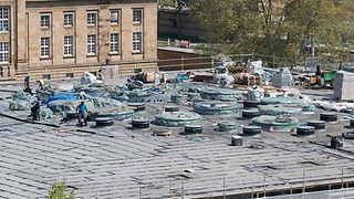 Abdichtungsarbeiten auf dem Dach des Landtagsgebäudes.<br />