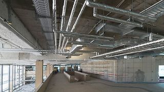Technische Anlagen wurden an der Decke im Landtagsgebäude installiert.<br />