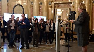 Landeswahlleiterin Christiane Friedrich verkündet im Marmorsaal das vorläufige amtliche Endergebnis.