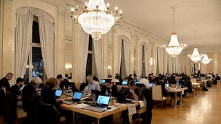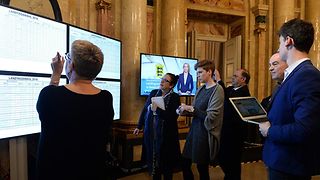 Im Neuen Schloss für den Wahlabend eingerichtet: Arbeitsraum für Journalisten.