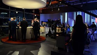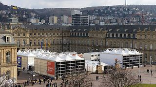 Medienhochburg im Innenhof des Neuen Schlosses: Die öffentlich-rechtlichen Sendeanstalten haben eigens für die Wahl Fernsehstudios aufgebaut, die in großen Zelten untergebracht sind.