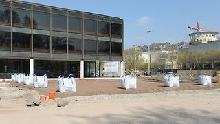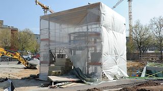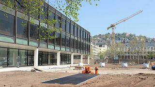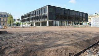Blick auf die Agora des künftigen Bürger- und Medienzentrums.