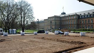 Rasenfläche mit Blickrichtung auf das Neue Schloss. (Aufnahme: 07.04.15)