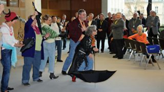 Nach der intensiven Arbeit in den Arbeitsgruppen ist für die Seniorinnen und Senioren Unterhaltung angesagt. Das Improvisationstheater „die 5te jahreszeit“ stimmt mit seiner Aufführung auf die anschließende Abschlussrunde ein.
