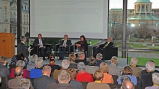 Politische Beteiligung in der repräsentativen Demokratie erschöpft sich nicht alleine in der Wahlhandlung. „Politik geht uns alle an. Anliegen und Ideen müssen in den politischen Prozess eingebracht werden, damit wir Parlamentarier wissen, was die Bürgerinnen und Bürger bewegt.“ Davon zeigt sich Landtagspräsident Guido Wolf (am Rednerpult) in seinem Grußwort zur vom Landtag in Zusammenarbeit mit dem Landesseniorenrat und dem Sozialministerium organisierten Veranstaltung „Seniorinnen und Senioren im Parlament“ am Dienstagvormittag, 4. Dezember 2012, überzeugt. Die Veranstaltung sei der krönende Abschluss der Veranstaltungsreihe des Landtags zum Landesjubiläum, unterstreicht Wolf. Er bestärkt die rund 160 anwesenden Seniorinnen und Senioren, weiterhin engagiert am politischen Meinungsbildungsprozess teilzunehmen und speziell heute Antworten auf die Frage „Wie können wir unser Land seniorinnen- und seniorenfreundlich mitgestalten“ zu finden. Im Anschluss folgen Gespräche mit Sozialministerin Katrin Altpeter (SPD) und dem Vorsitzenden des Landesseniorenrats Roland Sing sowie ein Impulsreferat „Selbstbestimmtes Leben im Alter“ von Prof. Dr. Cornelia Kricheldorff.