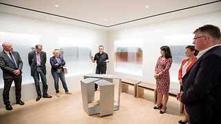 Er soll Ruhe ausstrahlen und Besuchern neue Kraft geben: Am Dienstag, 16. Juli 2019, wurde nach zweieinhalbjähriger Planungs- und Bauphase der neu geschaffene „Raum der Stille“ eröffent. „Im Parlament, in dem es oft turbulent und auch hitzig zugeht, soll der Ort, der Abgeordneten, Besuchern und Mitarbeitern zur Verfügung steht, Rückzugsraum sein für ein Gebet oder eine Meditation und auch für ökumenische Andachten“, sagte Landtagspräsidentin Muhterem Aras. Der „Raum der Stille“ befindet sich im Untergeschoss des Landtagsgebäudes direkt am Tunnel zum Haus der Abgeordneten. Künstlerisch gestaltet wurde er von dem Esslinger Raumkonzept-Künstler Bernhard Huber. "Im Raum der Stille kann der Besucher den Lärm dieser Welt und die von Reizüberflutung unsortierten Gedanken hinter sich lassen, er kann sich frei machen und Kraft schöpfen", sagte Huber.