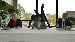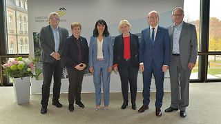 Mit der heutigen Unterschrift ist es offiziell: Zwei Wochen nachdem der Landtag mit großer Mehrheit beschloss, dem Versorgungswerk der Mitglieder der Landtage von Nordrhein-Westfalen und Brandenburg beizutreten, unterzeichnen Landtagspräsidentin Muhterem Aras und ihre Amtskollegen Dr. Ulrike Liedtke aus Brandenburg und André Kuper aus Nordrhein-Westfalen am Donnerstag, 21. November 2019, den Vertrag.