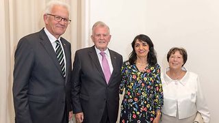 Ein aufrechter Demokrat und geradliniger Politiker, überzeugter Europäer und erfolgreicher Ministerpräsident feiert 80. Geburtstag. Auch Landtagspräsidentin Muhterem Aras nimmt am Geburtstagsempfang am Mittwochabend, 4. September 2019, im Stuttgarter Neuen Schloss teil, um Ministerpräsident a. D. Prof. Dr. h. c. Erwin Teufel ihre Glückwünsche zu übermitteln. Teufel blickt auf acht Jahre als Bürgermeister und Kreisrat, 34 Jahre als Abgeordneter und 14 Jahre als Ministerpräsident zurück. Insbesondere zwei Dingen hätten den Politiker Erwin Teufel stets angetrieben, so Ministerpräsident Winfried Kretschmann in seiner Laudatio. Zum einen die Kraft, die aus der Beschäftigung mit der Geschichte erwächst und sein Glaube. Teufel erklärte in seiner Rede, er habe mithelfen wollen, dass sich so etwas wie der Zweite Weltkrieg nicht wiederhole. Den Rechtsstaat zu erhalten, das sei nicht nur eine Aufgabe für den Bund und die Länder, sondern die Aufgabe eines jeden aktiven Bürgers und eines jeden Menschen, der denke.