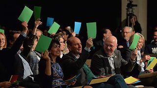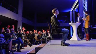 Präsidentin Aras spricht über Hatespeech, berichtet von Mails und Briefen, anonym, rassistisch, sexistisch: „Fast schlimmer als die persönlichen Angriffe, sind die Angriffe auf das Amt – auf eine demokratisch gewählte Vertreterin des Volkes.“ Sie sagt: „Ich möchte mich nicht daran gewöhnen, dass wir so miteinander umgehen.“ Der Polizeihauptkommissar Rainer Hellmann erzählt von Gefährdungsbeurteilungen, wenn aus Hatespeech konkrete Drohungen werden. Die Bilanz der jungen Generation am Ende eine durchwachsene: Wie schwach die Kommunikation zwischen der Bevölkerung und der Politik ist, findet Julia Ruppert von den Fridays, CDU-Mitglied Merve Gül plädiert für Engagement in Parteien, weil dies die Entscheidungsträger sind. Und Dennis Sadik Kirschbaum bindet die CONMEDIA 2020 ab mit einer Poetry Slam-Einlage: Wir brauchen nicht mehr Demokratie, wir brauchen mehr Demokraten, dahinter gehen die Schilder hoch mit Wörtern wie Einmischen, Leidenschaft, Mitmachen. Präsidentin Aras sagt Danke für den tollen Abend. Junge Menschen für Politik zu interessieren sei das Zukunftsthema schlechthin, weshalb der Landtag offen bleibt für Überraschungen und gerne als Einladender und Akteur in Erscheinung trete. „Ein solcher Abend ist eine Win-Win-Veranstaltung“, so Präsidentin Aras.