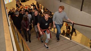 Gehören Phrasen zum politischen Betrieb? Wie gefährlich sind Fake-News und Hate-Speech? Wie beeinflussen Gruppen außerhalb des Parlaments die Politik? Kommt die Politik überhaupt noch ins Gespräch mit den Leuten? Wie sieht es aus mit den Jungen? „Lost in politics – Miteinander? Gegeneinander? Füreinander?“ lautet der Titel der dritten CONMEDIA im Landtag von Baden-Württemberg. Das von 23 Studierenden der Hochschule der Medien (HdM) der Studiengänge Medienwirtschaft, Crossmedia-Redaktion und Unternehmenskommunikation konzipierte, interdisziplinäre, journalistische Projekt widmet sich verschiedenen Aspekten rund um Sprache in der Politik – von der parlamentarischen Rede über Hatespeech, Fake News und Phrasen bis Satire. Mehr als zwei Stunden dauert der Event, in dem sowohl Landtagspräsidentin Muhterem Aras als auch verschiedene Landtagsabgeordnete sowie Aktive von Parteien, Bewegungen wie Campus for Future oder Junge Muslime eingebunden sind. Die Einstimmung übernehmen Studierende der Fachrichtung Sprachkunst, die im Plenarsaal wie auf einer Bühne eine aus realen Redebestandteilen konstruierte Debatte nachbilden. Dafür hatte das CONMEDIA-Team alle Protokolle von Landtagsdebatten des Jahres 2019, mehr als 1500 Seiten, ausgewertet. „Faszinierend, wie viel man reden kann, ohne etwas zu sagen“, begrüßt Moderator Alexander Winkler (SWR/IMO-Institut für Moderation) die rund 350 Gäste im Foyer.