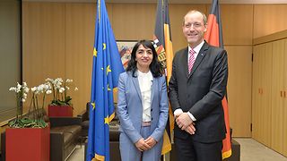 Der Vertreter der Europäischen Kommission in Berlin, Dr. Jörg Wojahn, stattet dem Landtag am Mittwoch, 29. Januar 2020, einen Besuch ab und wird von Landtagspräsidentin Muhterem Aras in ihrem Büro zu einem Gespräch empfangen. Thema war unter anderem der Europäische Ausschuss der Regionen (AdR), der die regionalen und lokalen Gebietskörperschaften Europas vertritt. Landtagspräsidentin Aras ist eines der Mitglieder. Dr. Wojahn leitet seit September 2019 die Kommission in Berlin, die als Bindeglied zwischen der Kommission in Brüssel und den Menschen, der Politik und der Wirtschaft sowie der Zivilgesellschaft in Deutschland agiert.