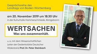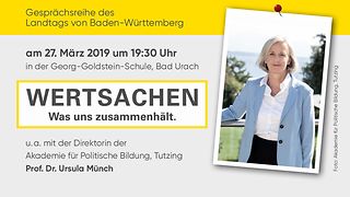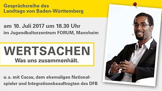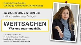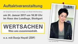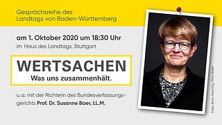 „Vor diesem Hintergrund ist es angezeigt, sich mit der Basis unseres Zusammenlebens auseinanderzusetzen, nämlich mit Grundgesetz und Landesverfassung“, sagt Landtagspräsidentin Muhterem Aras. Das soll in der von ihr initiierten Gesprächsreihe „WERTSACHEN – Was uns zusammenhält“ geschehen. Ziel ist, die wichtigen Grundlagen unseres Zusammenlebens zu beleuchten, lebendig werden zu lassen und damit eine Wertediskussion anzustoßen.