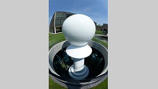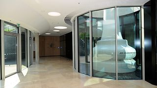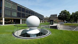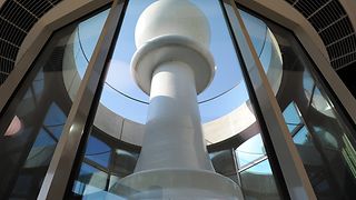 „Der Volksvertreter“ heißt die 7,20 Meter hohe Skulptur, die eigens für das neue Bürger- und Medienzentrum entworfen wurde. Ihr Sockel steht im Lichtschacht der unterirdisch im Halbrund einer Agora angeordneten Säle. Der Schweizer Künstler Beat Zoderer, Jahrgang 1955, wählte die überdimensionale Schachfigur eines Bauern, um plakativ vor Augen zu führen, von wem Abgeordnete gewählt werden und für wen Politik gemacht wird.