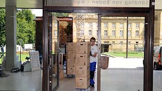 Nach rund drei Jahren im Ausweichquartier Königin-Olga-Bau ist die Landtagsverwaltung Anfang August 2016 in das generalsanierte Parlamentsgebäude zurückgezogen. Neben Landtagspräsidentin, Vizepräsident und Direktor bezogen auch viele Mitarbeiterinnen und Mitarbeiter ihre neuen Büros, die - wie das gesamte Landtagsgebäude - im Zuge der Umbaumaßnahmen auf den neuesten Stand der Technik gebracht wurden. Für den Umzug mussten Hunderte Kartons gepackt und transportiert werden.